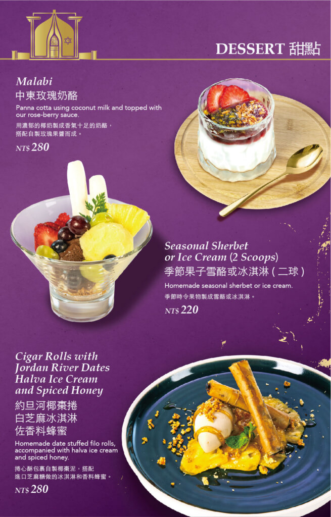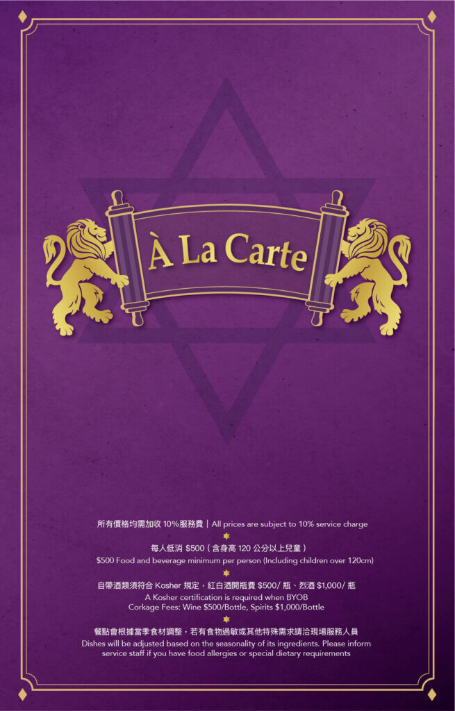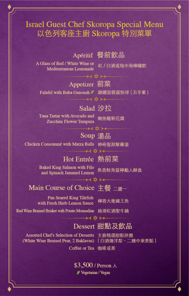 我們提供一系列精心製作,囊括現代與傳統風格的以色列及猶太佳餚,採用最新鮮、優質,符合猶太潔食規範的食材現場烹調,讓您遍嚐橫跨以色列和廣闊地中海地區的風味菜色。